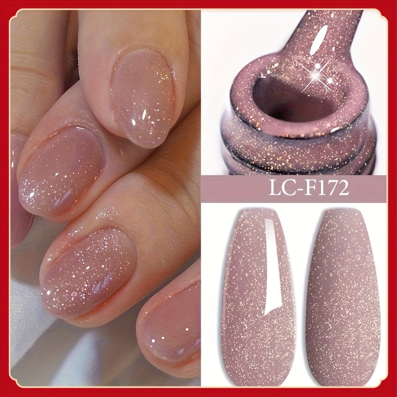 LILYCUTE 0.24oz Nude Pink Sparkling Glitter Nail Gel Polish - Full Coverage LED Gel Varnish with Multicolor Glitter, Long-Lasting Shine, Easy Application, Nail Tech Supplies | Sparkling Effect | Alcoholfree Gel